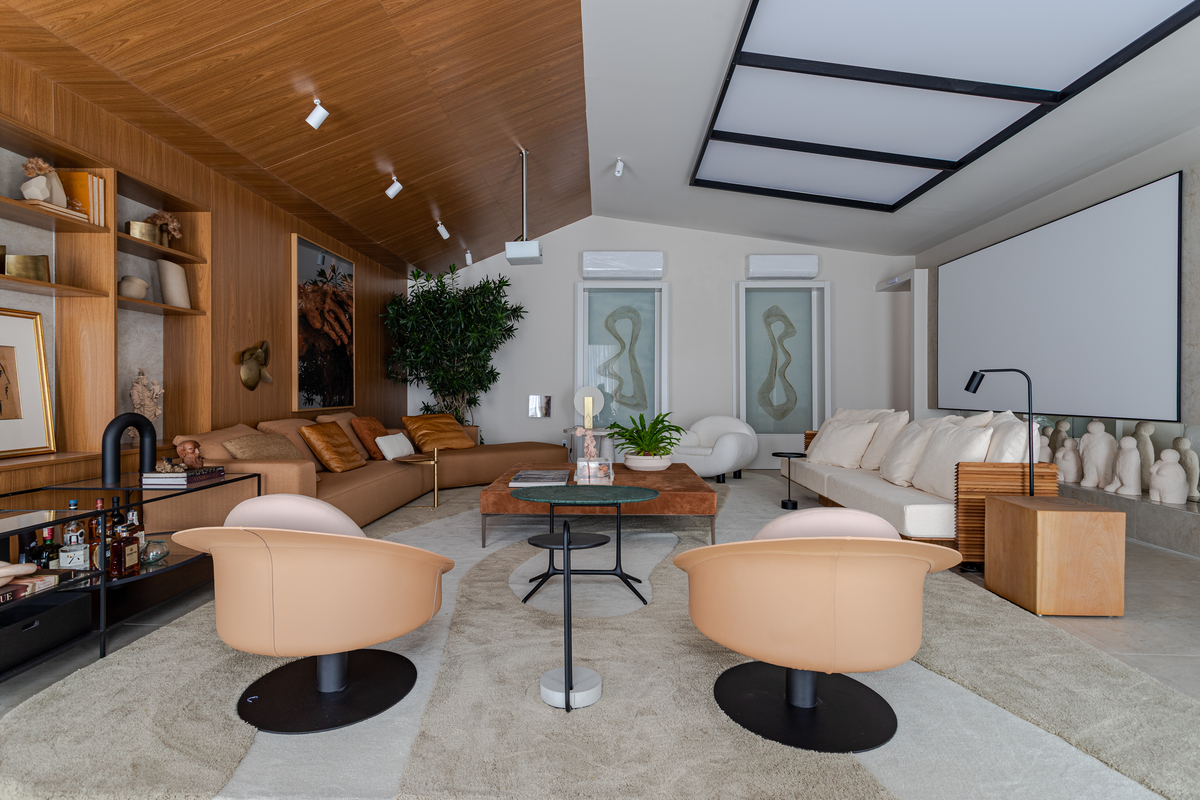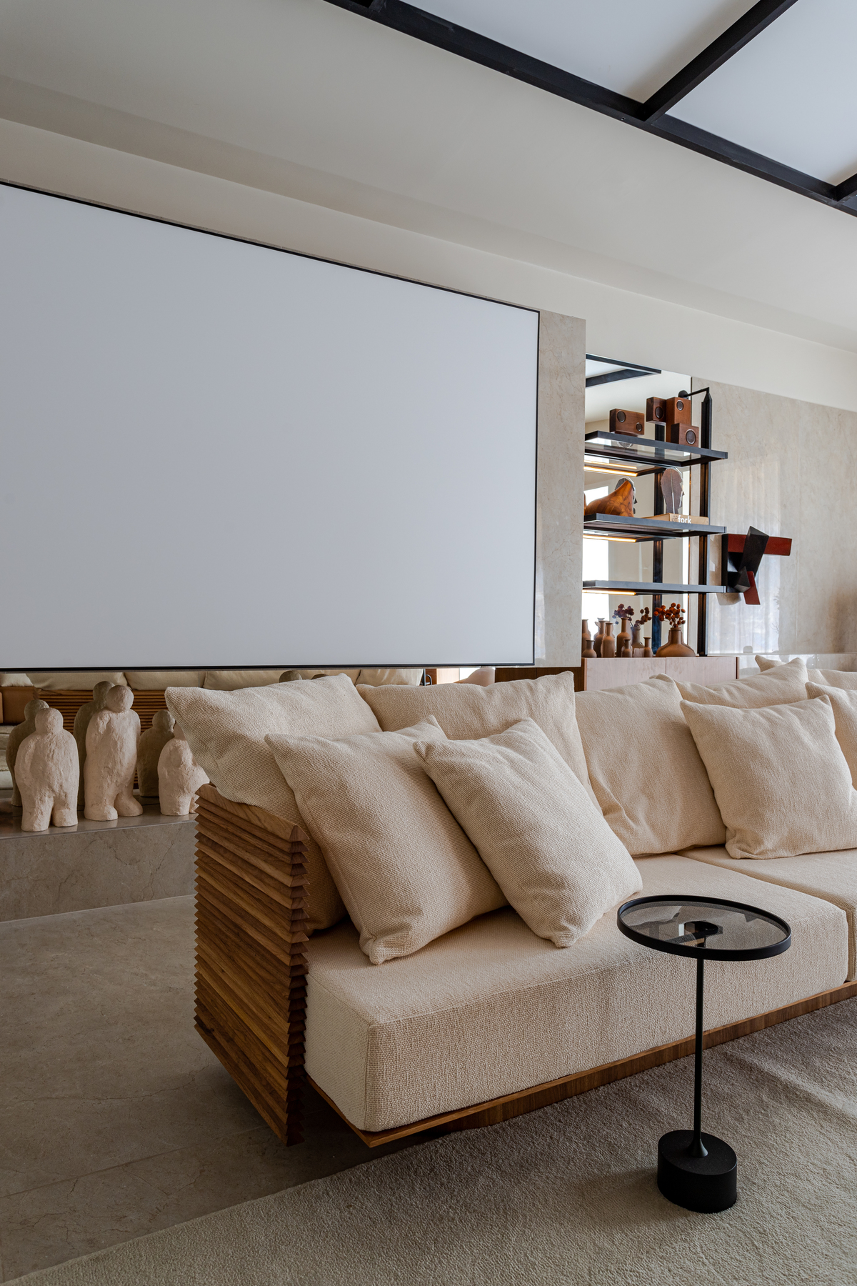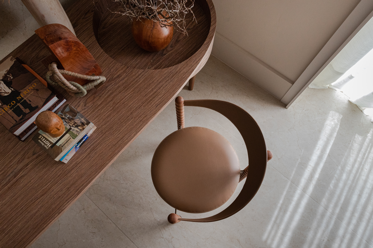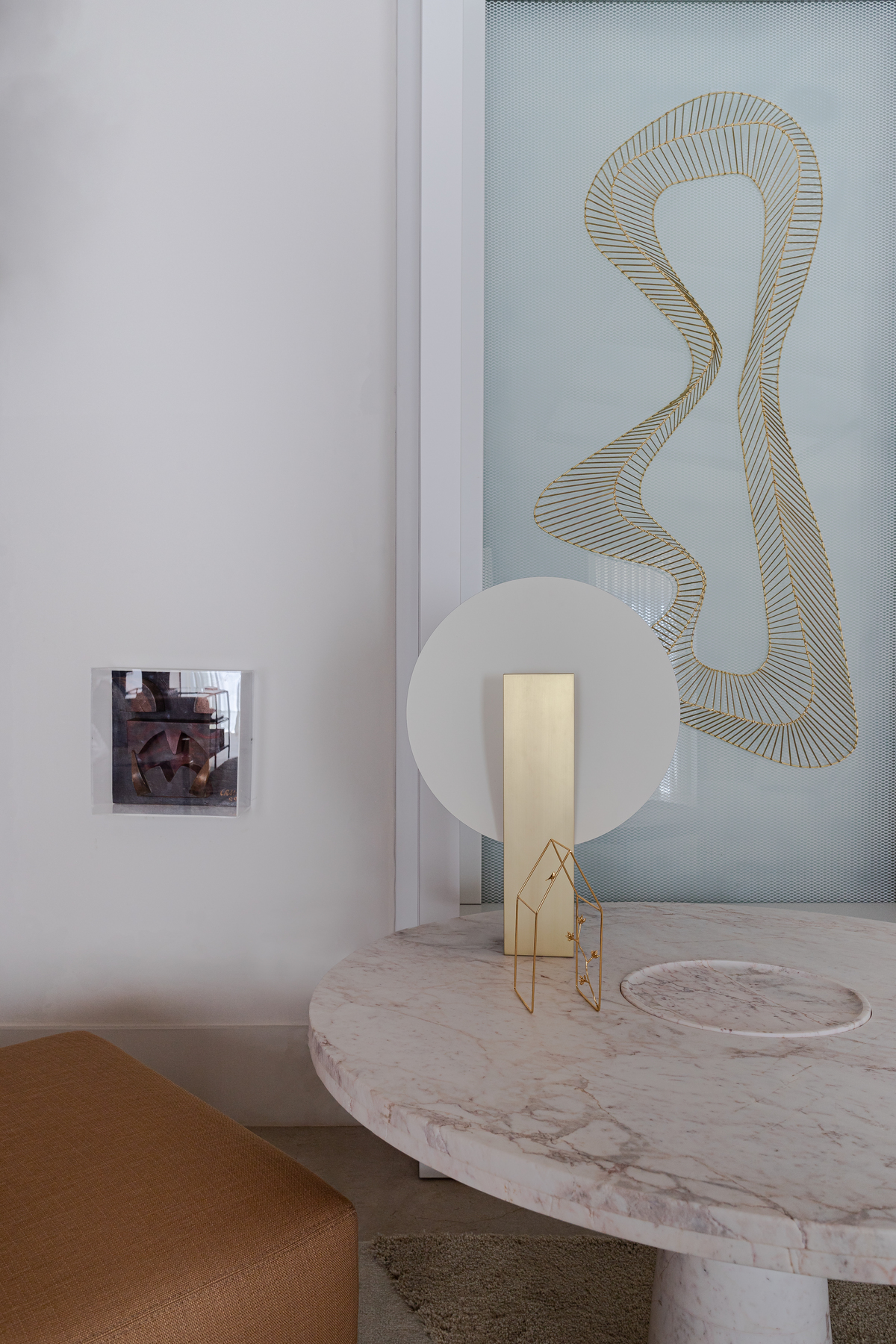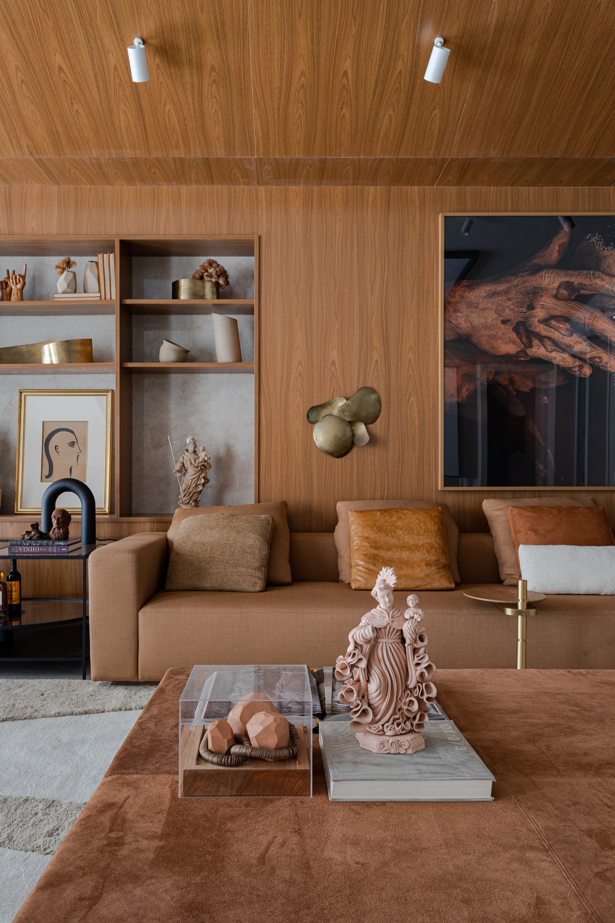 O bairro em si já é uma inspiração. O Santo Antônio Além do Carmo e suas casas coloniais, os rebocos das paredes, os tons terrosos. Rogerio Menezes tem uma ligação muito forte com o santo, destaque na mesa de centro do espaço.