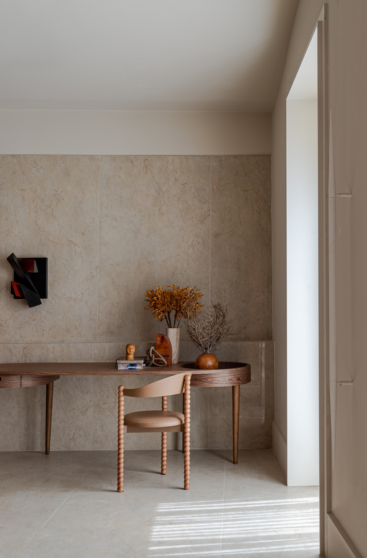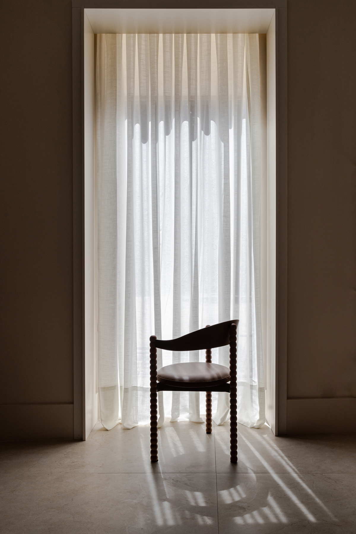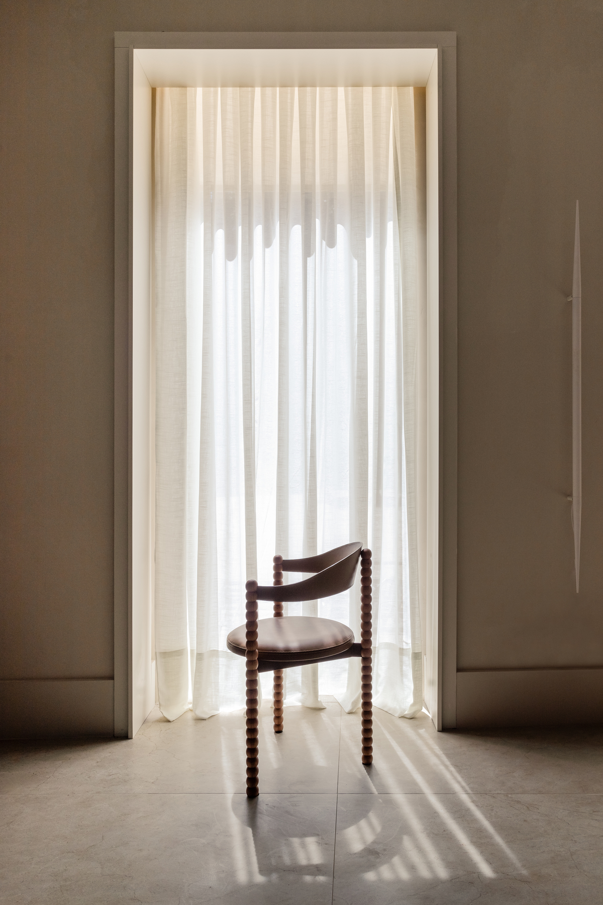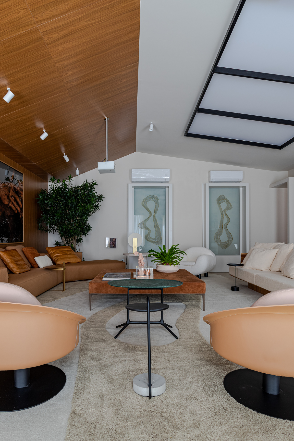 O bairro em si já é uma inspiração. O Santo Antônio Além do Carmo e suas casas coloniais, os rebocos das paredes, os tons terrosos. Rogerio Menezes tem uma ligação muito forte com o santo, destaque na mesa de centro do espaço.