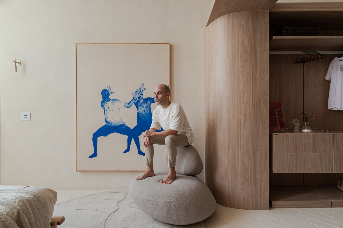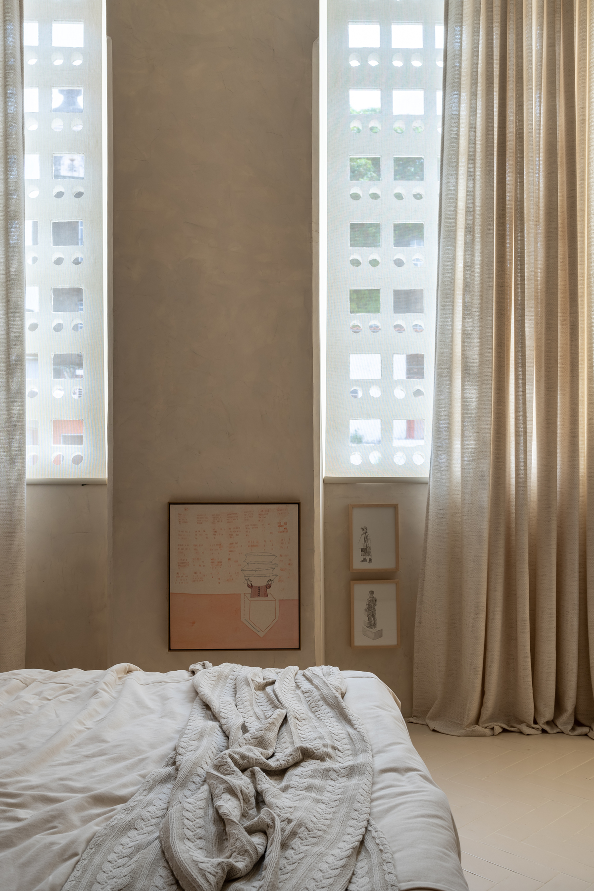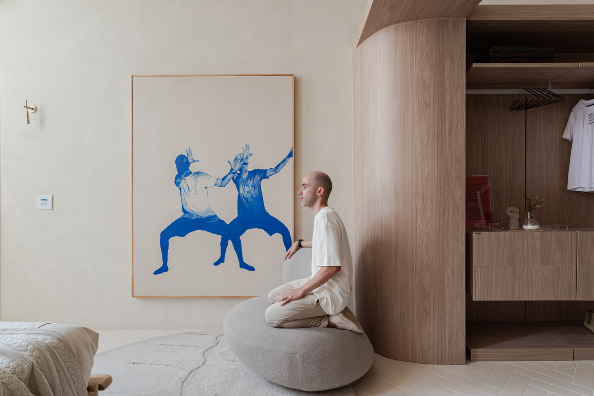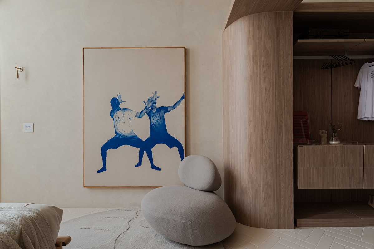 A arte está por toda parte. Uma instalação de lâmpadas da artista Ana Michaelis, juntamente com os castiçais (reais ou figurativos) nas laterais da cama, desenhada especialmente para o espaço, reforçam o pensamento iluminista do espaço. Em frente, a obra da série Tempo, do artista baiano Pedro Marighella, é o único ponto de cor em todo o espaço. Ainda tem Felipe Rezende, Milena Oliveira, Thiago Sant`ana e Renata de Bonis espalhadas pelo ambiente.