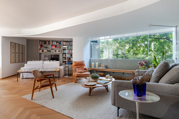 "A cliente nos procurou quando estava ainda buscando um imóvel para sua nova morada. Ao entrar neste apartamento, foi paixão à primeira vista. E que vista!! Uma mata linda no janelão da sala. A sensação é que vamos esticar o braço e alcançar um galho de uma mangueira ou de uma cajazeira.